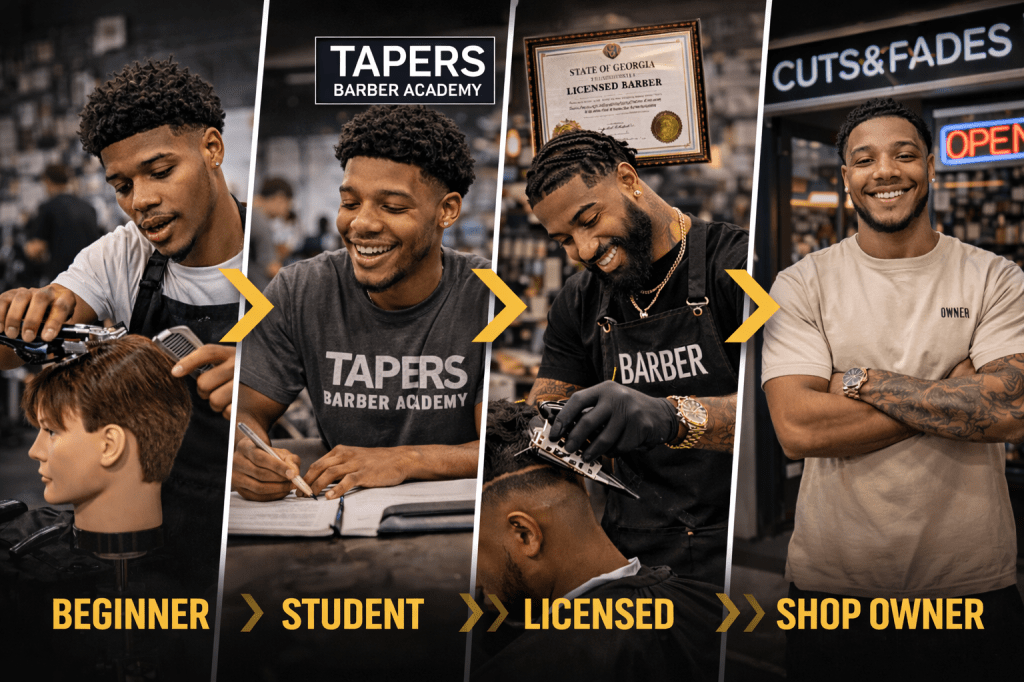 Posted on March 11, 2026March 10, 2026 by CLL Associates If you want to learn how to be a licensed barber and you have no idea how to get started…. Check out Tapers Barber Academy! We will take you from a beginner to a licensed barber in 9 months! From there; you can own your own shop! Enroll now! Click the link! Share this: Share on X (Opens in new window) X Share on Facebook (Opens in new window) Facebook Email a link to a friend (Opens in new window) Email Share on LinkedIn (Opens in new window) LinkedIn Share on Tumblr (Opens in new window) Tumblr Share on Pinterest (Opens in new window) Pinterest Like Loading... Related